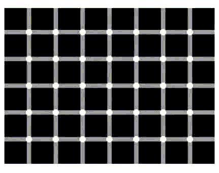 猛一看会觉得下图有好多黑点,但是当你定睛细看时,你根本无法直接看到任何黑点。其实,黑点是不存在的,那是视觉错觉。