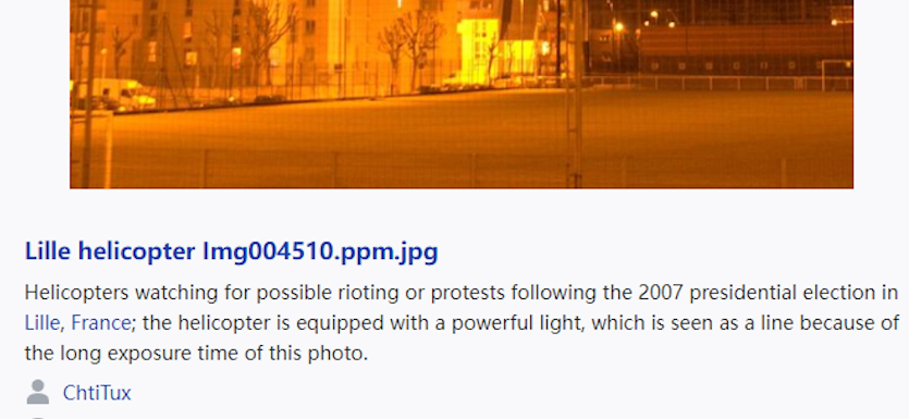 然而其实这是2007年法国总统大选之后,直升机正在监视当地可能发生的骚乱或抗议活动,照片中梯形的光束,是直升飞机下方的探照灯,这种拍摄效果,也是相机长时间曝光所导致的。
