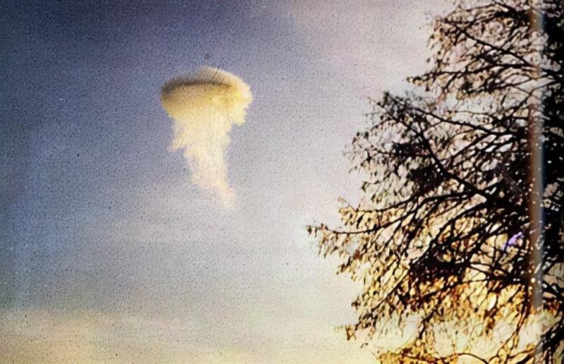 1974年11月17日清晨,劳尔森先生在丹麦朱特兰的维堡与宠物狗一起散步时,看到一个奇怪的物体出现在白云中。